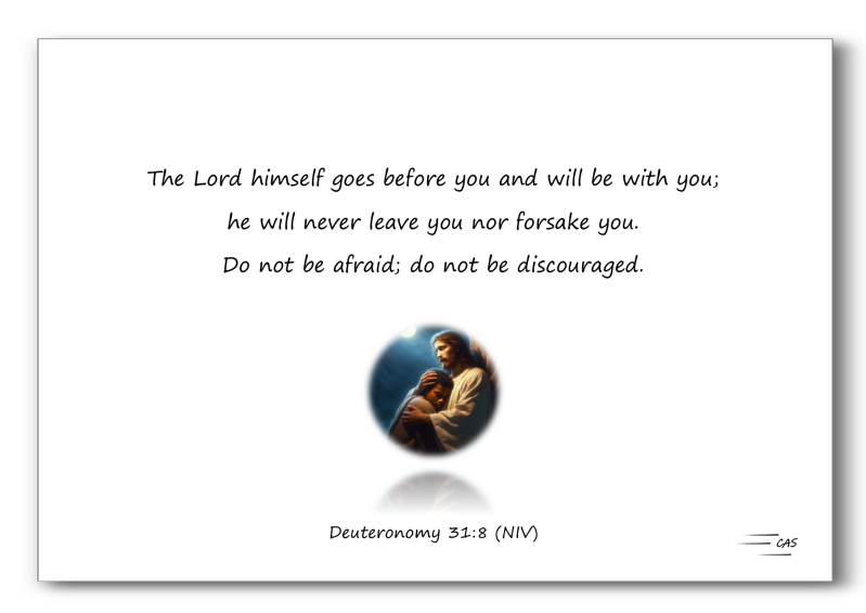 The Lord himself goes before you and will be with you; he will never leave you nor forsake you. Do not be afraid; do not be discouraged. - Deuteronomy 31:8 (NIV)