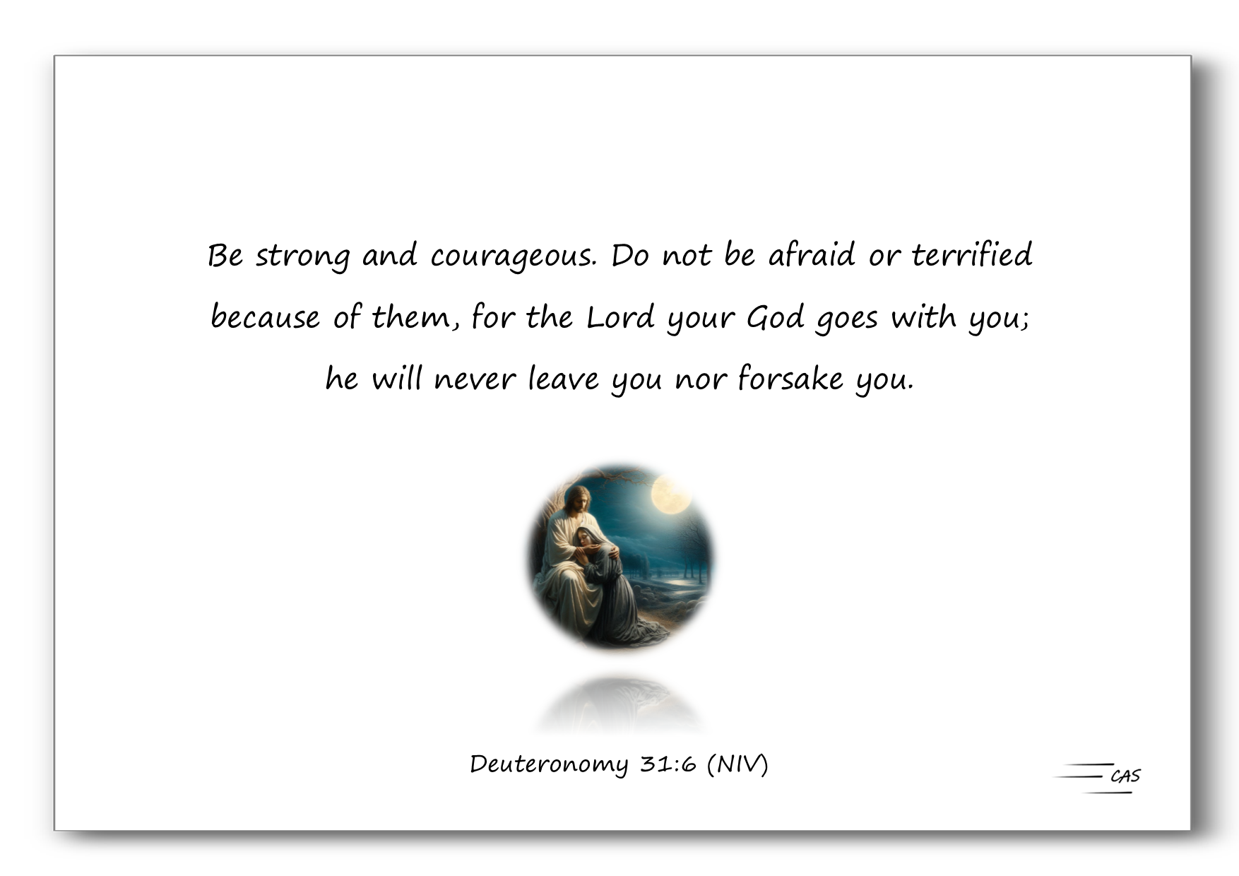 The Lord himself goes before you and will be with you; he will never leave you nor forsake you. Do not be afraid; do not be discouraged. - Deuteronomy 31:8 (NIV)