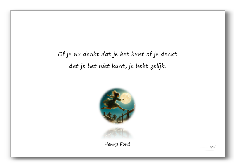 Of je nu denkt dat je het kunt of je denkt dat je het niet kunt, je hebt gelijk. - Henry Ford
