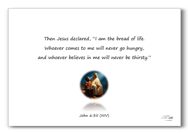 7) Then Jesus declared, “I am the bread of life. Whoever comes to me will never go hungry, and whoever believes in me will never be thirsty.” - John 6:35 (NIV)