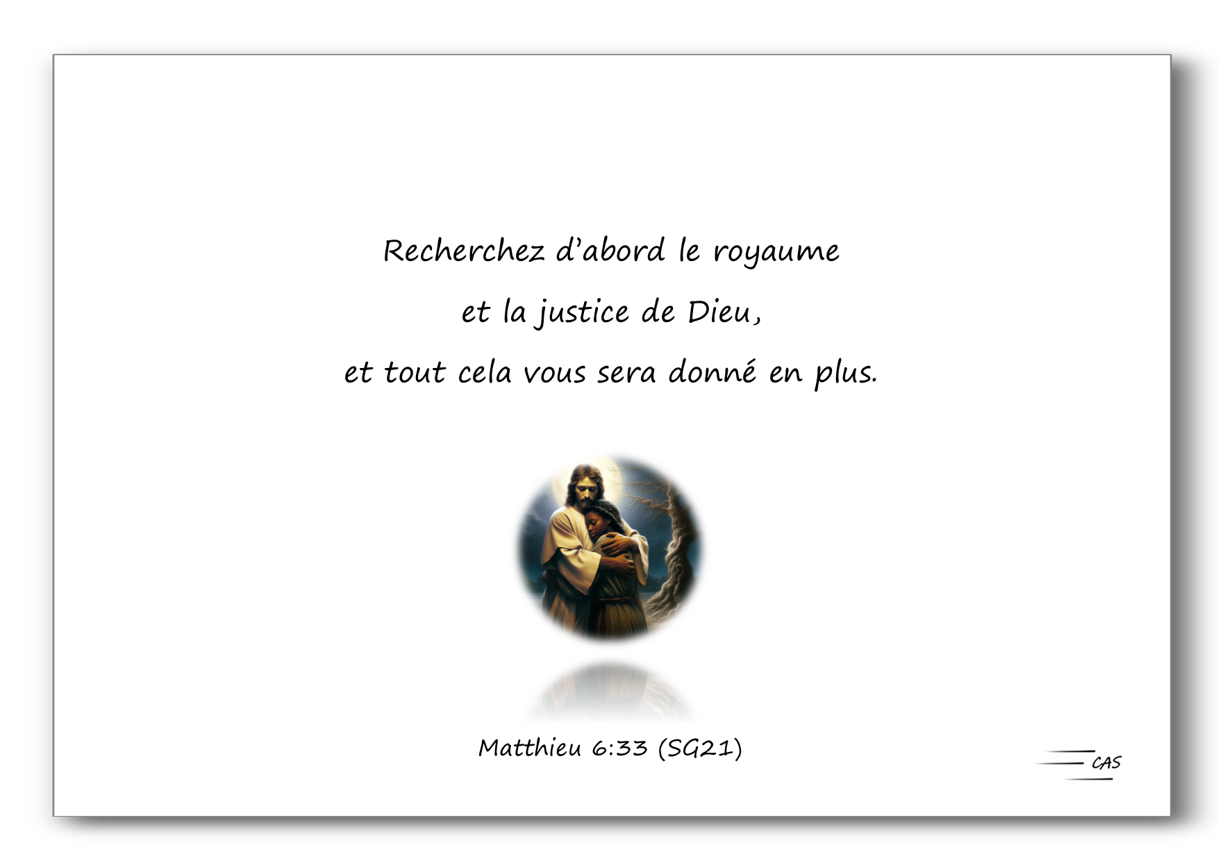 9) Recherchez d'abord le royaume et la justice de Dieu, et tout cela vous sera donné en plus. - Matthieu 6:33 (SG21)